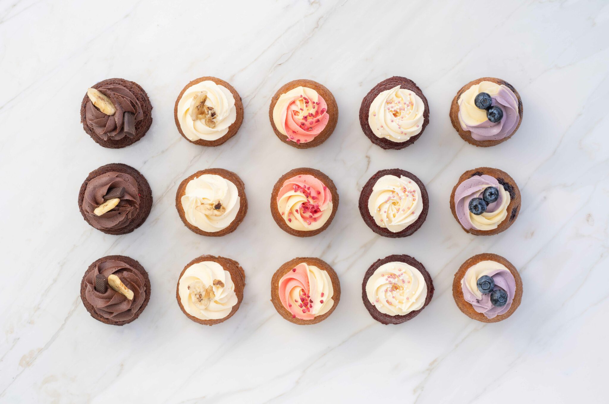 Who doesn’t love a cupcake? We offer four varieties simply because they are all best sellers! Our selection features vibrant vegan buttercream cupcakes, available in gradient and funky colours, topped with fresh or dried fruits, and baked without paper for a wasteless lifestyle!