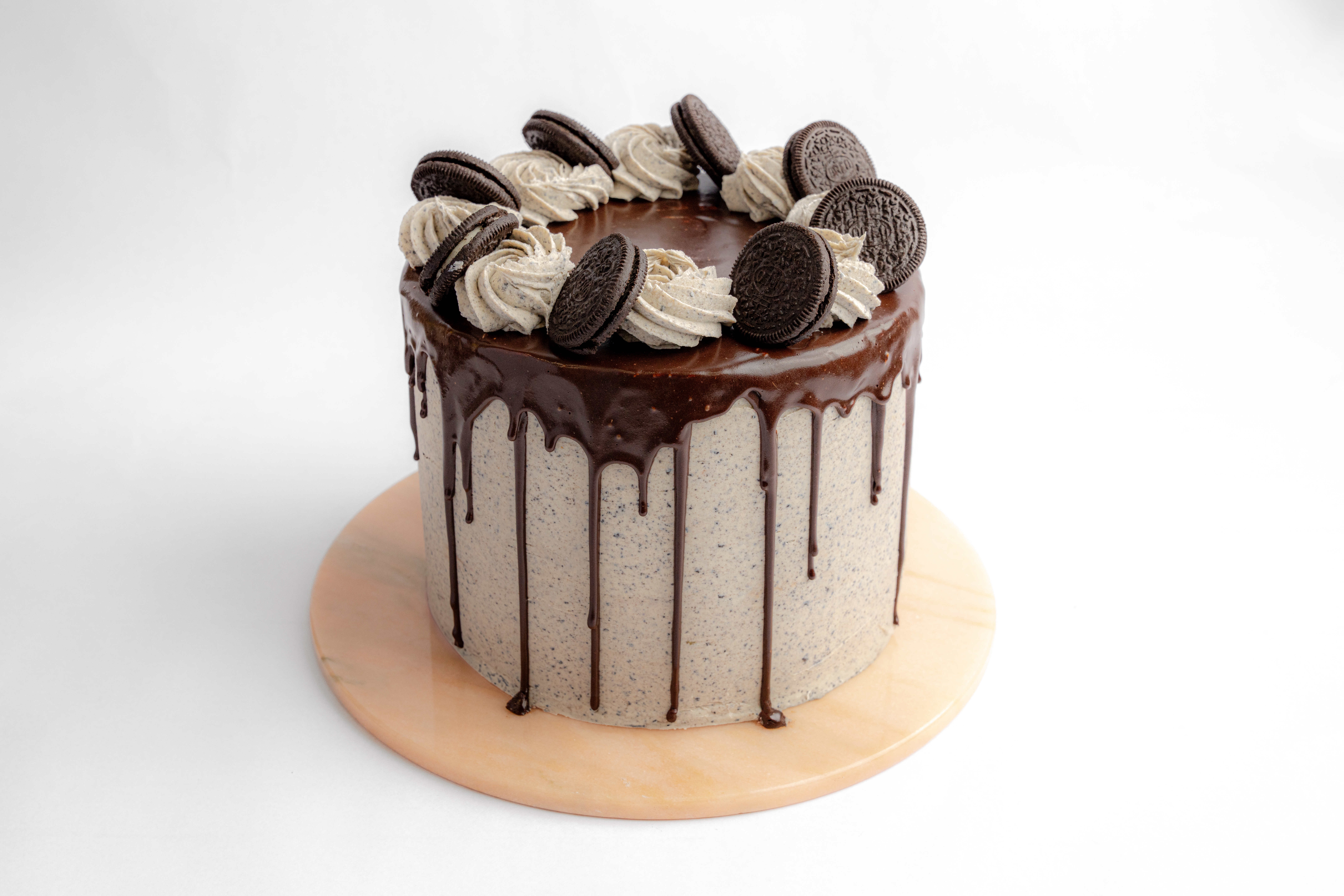 Vegan indulgence at its finest! Our rich and decadent Oreo chocolate cake features four layers of moist chocolate sponge, generously filled with a velvety Oreo-infused buttercream. Finished with a smooth, glossy chocolate drip and topped with Oreos, this cake is a true treat for all chocolate and Oreo lovers. Vegan, from £60.00