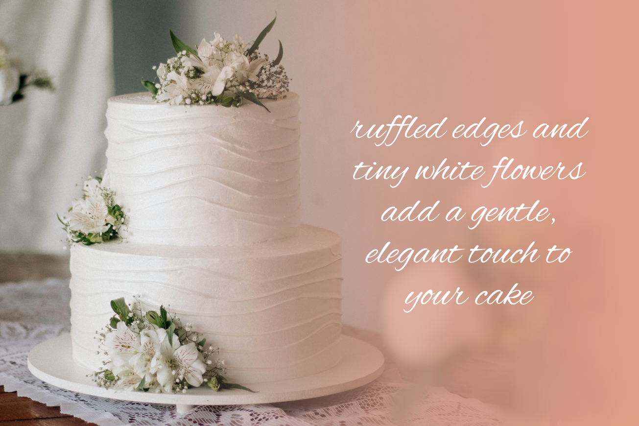 Our two-tier ruffled cake is a stylish and elegant choice for your wedding. With its intricate buttercream finish, it offers an elegant and luxurious look.